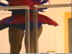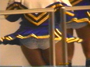 続く青スコートに白のトレーナーのZ條製紙はヒップシェイクやターンなど元気のいい踊りを披露してくれました。次の回では「学園天国」に乗せてお尻を半分食み出させながら眺んだり跳ねたりのちょっと過激なセクシーダンスでよかったでず。Y印もキックありターンありと非常にいい動きで、最後はスタンツを決めようとしましたがご愛嬌でした。最後の回では再びZ條がピンクのジャンパーで登場。フットライトを下からいやらしくお尻に浴びながら踊るさまはとても刺激的で興奮ものでした。時々後ろを向いてお尻をくねらす所が何ともいやらしくて堪りませんでした。Y印も負けじと「2億4千万の瞳」に合わせてとても激しい振り付けで観客を釘付けにしていました。その後超ミニが眩しいO子製紙、K土計画チアが入ってくると華々しさが一層増してきていよいよステージに上がると、先ず真っ赤なスコートのO子がカンカン帽を手に地味な振り付けながらターンをするとスコートの裾が思い切り広がって青いアンスコが丸見えになっていました。K土は昔のロカビリーに乗せてターンをするたびに眩しい純白のパンツが……。次もピンクレディーの曲に乗せてかなり激しい動きでお尻を突き出したりしてとても刺激的でした。O子は苫小牧から応援に来た青スコートに赤のトレーナーのチアがはにかみながら元気に踊る姿がとても可愛かったです。ターンをすると青のピチピチしたパンツが見えていました。