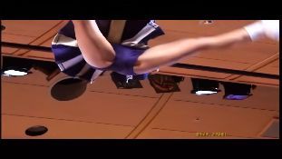• 室内ステージ……少し前までは発育のいい健康優良児ちゃんたちが多かったチームですが、今回のメンバーは、中肉中柄ちゃんがメイン。パープルなハイキック、ラインダンスキック、大の字ジャンプ、シャチホコ、Y字バランス、バック転etc. およそなんでもあり、のチラまくり。他、紺な大の字ジャンプ、ハイキックも。全篇、(2種の)チアユニフォームのみで構成、という会心作レベルに  。