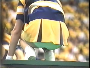 ※※チアの踊りの振り付けはハイキックが多いことで有名で、それが各大学の中でもダントツに高い人気を誇っている理由のひとつなのですが、この日はあらゆるアングルから狙って来る数多くのいやらしいレンズを目の前にして、チアも明らかに困惑していました。ほとんど脚を上げてくれません。それでも笑顔を絶やさないのはさすがです』